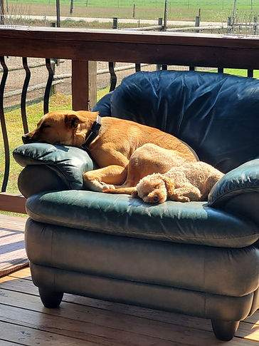Ray Ray and Echo enjoying a very warm sunny day on the porch. Spring is in the air.